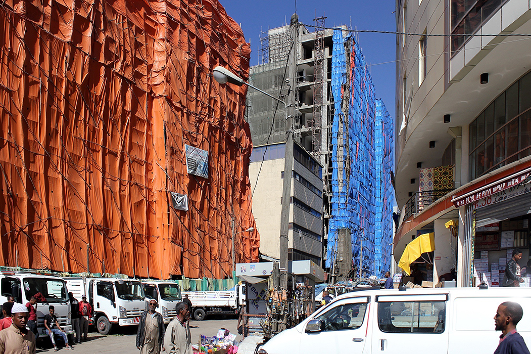 Type: Tapestry. Location: Munich, Germany. Year: 2018. Team: Emanuel Admassu, Jen Wood. Curator: Dr. Mpho Matsipa. Exterior Photographs: Rachel Hulin. Exhibition Photographs: Laura Trumpp. Exhibition Design: Wolff Architects.