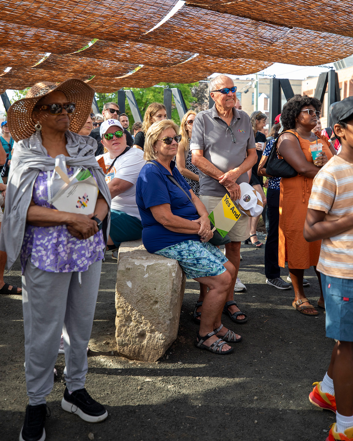 Type: Civic Space. Client: Landmark Columbus Foundation. Curators: Could Be Design, Mila Lipinski, Rasul Mowatt, Preservation Futures, Too Black. Year of Completion: 2025. Landscape: Sanctuary Native Landscapes. Site: The Former Irwin Block Building. Site Partner: The Office of Downtown Development. Support: African American Foundation of Bartholomew County. AD—WO Team: Emanuel Admassu, Jen Wood, David Zhang, Katie Solien. Construction: Taylor Brothers Construction. Photography: Hadley Fruits.