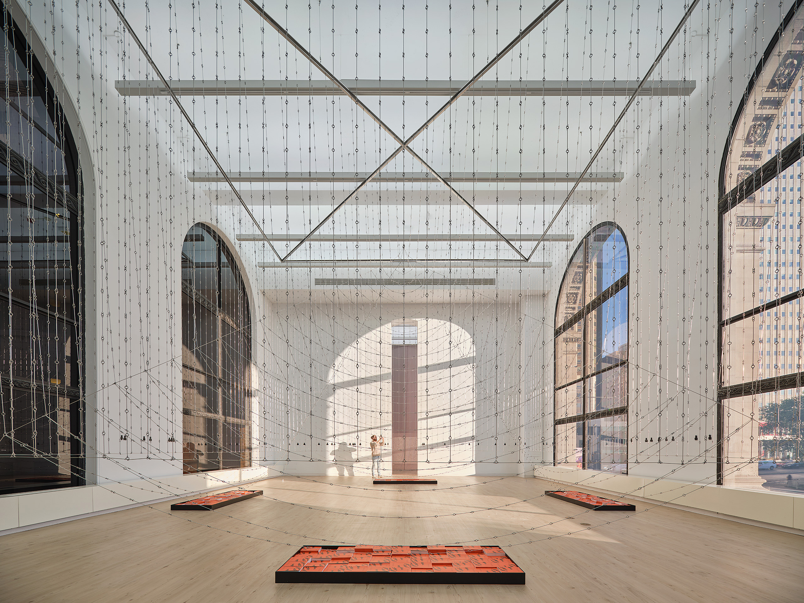 ዓይነት: መጫኛ. ከ ቡል ማእከል ጋር በመተባበር። ቦታ፡ ቺካጎ አርክቴክቸር በየሁለት ዓመቱ። ዓመት፡ 2023-2024 AD—WO ቡድን፡- ጄን ዉድ፣ አማኑኤል አድማሱ፣ ኬቲ ሶሊየን፣ ኤሪክ ሃገርማን፣ ጂን ሃን። የቡል ሴንተር ቡድን፡ ሉቺያ አላይስ (ዳይሬክተር)፣ ሚሼል ሁይን ቹ፣ ጃኮብ አር. ሙር፣ሉቺያ ጋላሬትቶ፣ ካትሪን ዌይሊን፣ ማውር ዴሳቫጌ፣ክላሪሴ ፊጌሬዶ ደ ክዌሮዝ የምህንድስና አማካሪዎች: ቶም ሬይነር, አክሰል ኪሊያን. ማምረቻ፡ ፖል ራስል፣ ዘቺካጎ ብሌክስሚዝ፣ ላውንዳሌ ፎርጅ (ሰንሰለቶች) ኮርኮር ማምረቻ እና ዲዛይን. (ቢም እና ጉድጓዶች).የመጽሐፍ ንድፍ: ማሪ ኦትሱካ. ፎቶግራፊ፣ በሌላ መልኩ ካልተገለጸ በቀር፡ ጦቢ አባወንሴ።