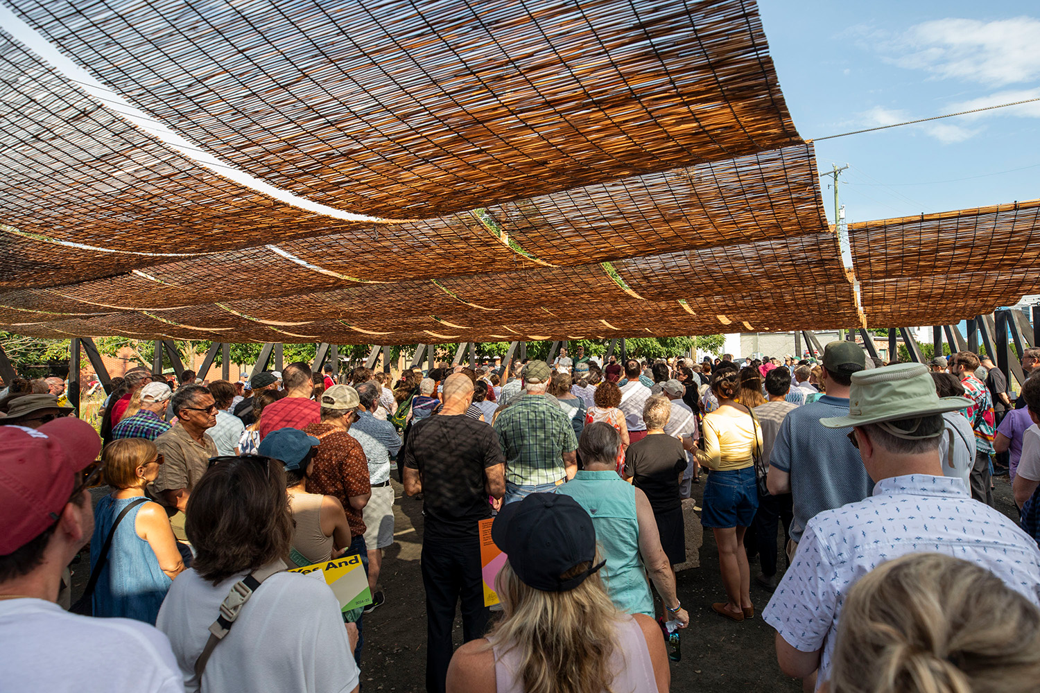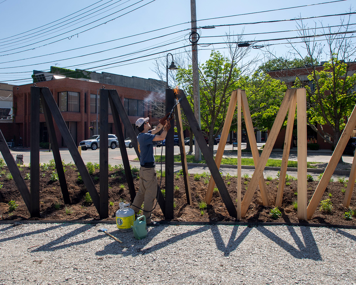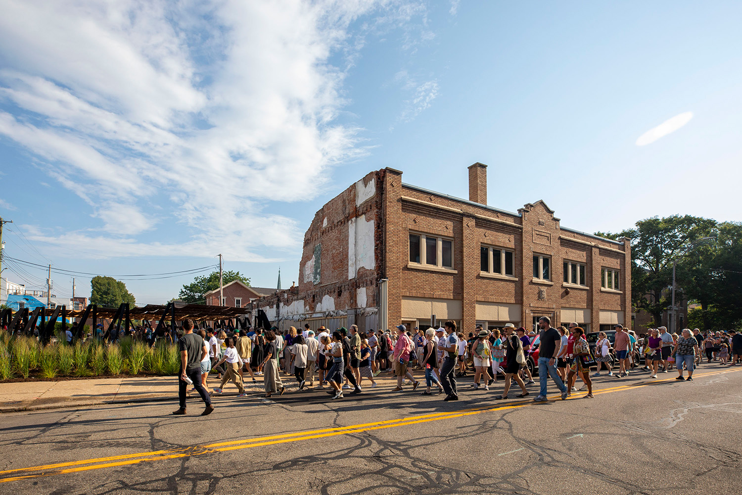 Type: Civic Space. Client: Landmark Columbus Foundation. Curators: Could Be Design, Mila Lipinski, Rasul Mowatt, Preservation Futures, Too Black. Year of Completion: 2025. Landscape: Sanctuary Native Landscapes. Site: The Former Irwin Block Building. Site Partner: The Office of Downtown Development. Support: African American Foundation of Bartholomew County. AD—WO Team: Emanuel Admassu, Jen Wood, David Zhang, Katie Solien. Construction: Taylor Brothers Construction. Photography: Hadley Fruits.